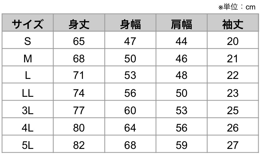 サイズ展開:S / M / L / LL / 3L / 4L / 5L