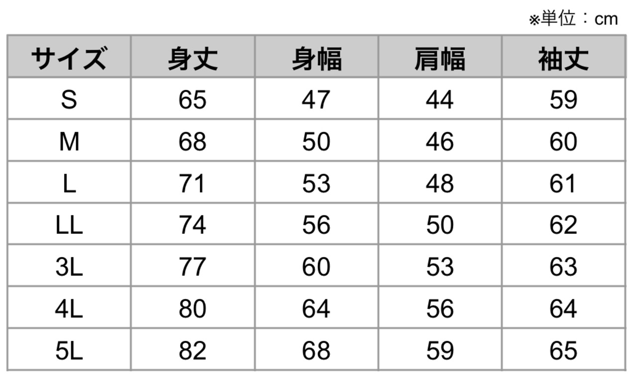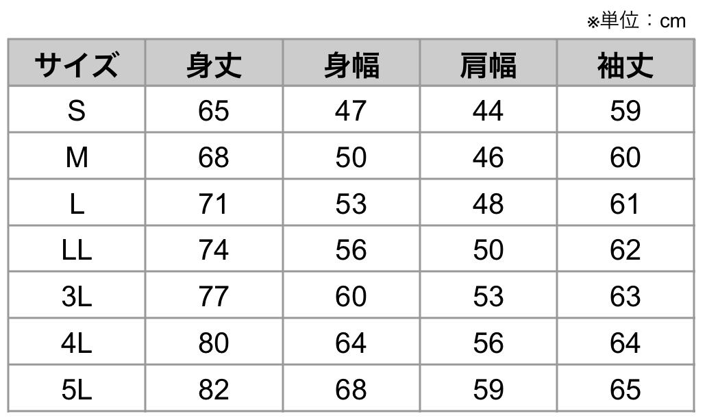 サイズ展開:S / M / L / LL / 3L / 4L / 5L